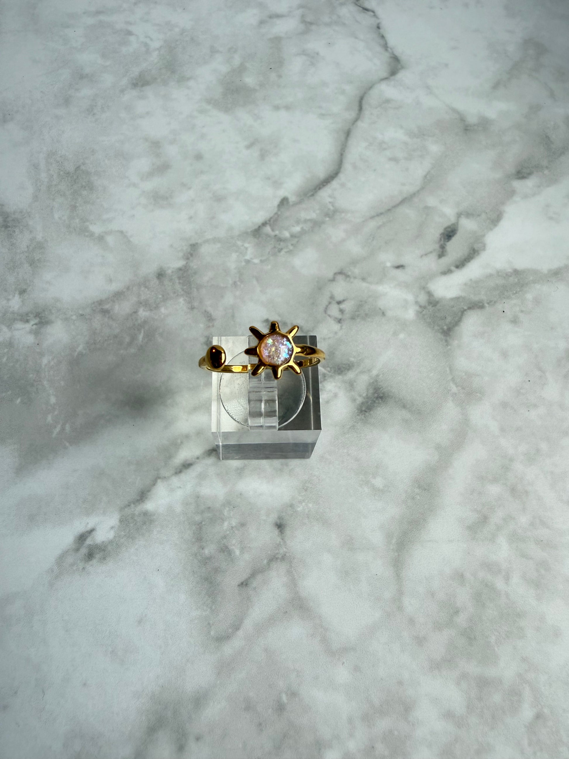 Beautiful opal sun detail wraparound ring available in gold